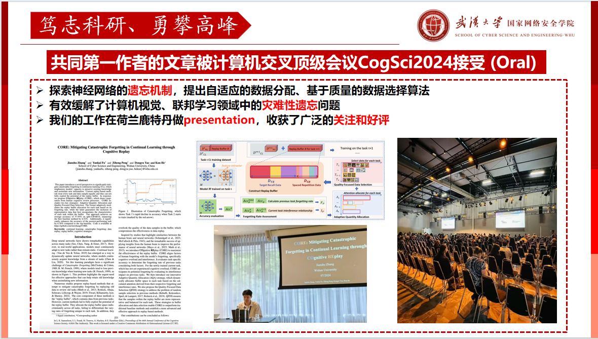 穷理致知,2篇论文分别在CCF-A会议和CCF-B会议上发表,获得3项国家发明专利、2项软件著作权。