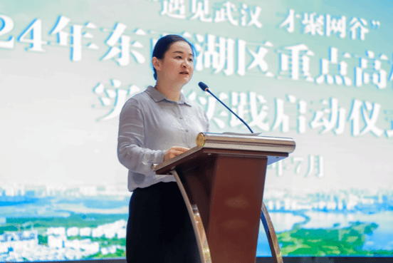 最后,东西湖区团委书记杨晓玥发表讲话,杨书记代表东西湖区向参与本次政务见习实践的同学们表示了欢迎,并仔细介绍了本次政务见习的各项工作内容,她寄语青年学子,奋斗是青春最亮丽的底色,要珍惜机会、转变角色、苦干实干,在见习岗位上经风雨,长才干,留下充实美好的回忆。