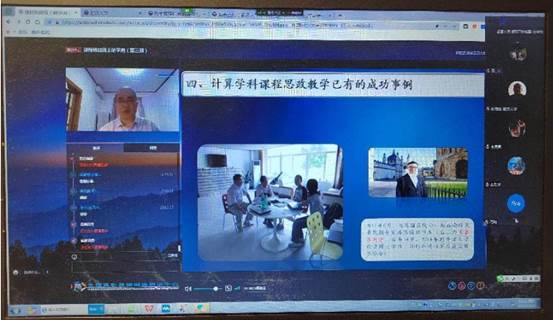 本次专题主题是计算机类专业核心课程课程思政建设,分别由北京邮电大学李文生老师与桂林电子科技大学董荣胜老师进行线上直播,两位老师分别以计算机类的核心课程《操作系统》与《计算机科学导论》为例,就如何深入挖掘课程中蕴含的思政元素,如何提升课程思政水平,如何有效推动专业教育与思政教育紧密融合做了详细讲解。