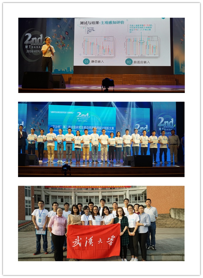 代表队的作品《声音二维码流:基于移动平台的实时隐蔽声音信号通信系统》获一等奖并进入八强,《只看脸安全吗?基于活性检测的移动平台人脸认证》、《掌上自助驾校》、《“城会玩”一键式报警求助APP及智能联动服务平台》、《谁动了我的手机》获二等奖;《基于手机令牌的安全云存储系统》获三等奖。