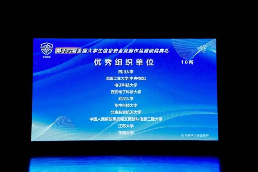 据悉,全国大学生信息安全竞赛是由中央网信办网络安全协调局、教育部高教司指导,教育部高等学校网络空间安全专业教学指导委员会于2008年发起并主办,全国知名高校轮流承办的一项大学生公益赛事活动。大赛已连续举办16届,目前已成为国内最具影响力的网络安全学科竞赛并入选“全国高校学科竞赛排行榜”。本次大赛从今年4月份启动,共吸引来自全国的206所高校,892支队伍,3103名学生参赛,参赛队伍和人数再创历史新高。