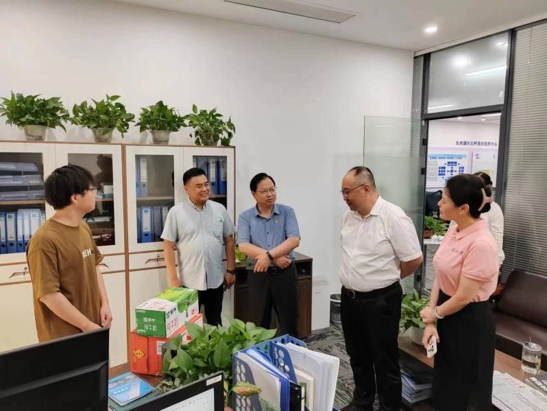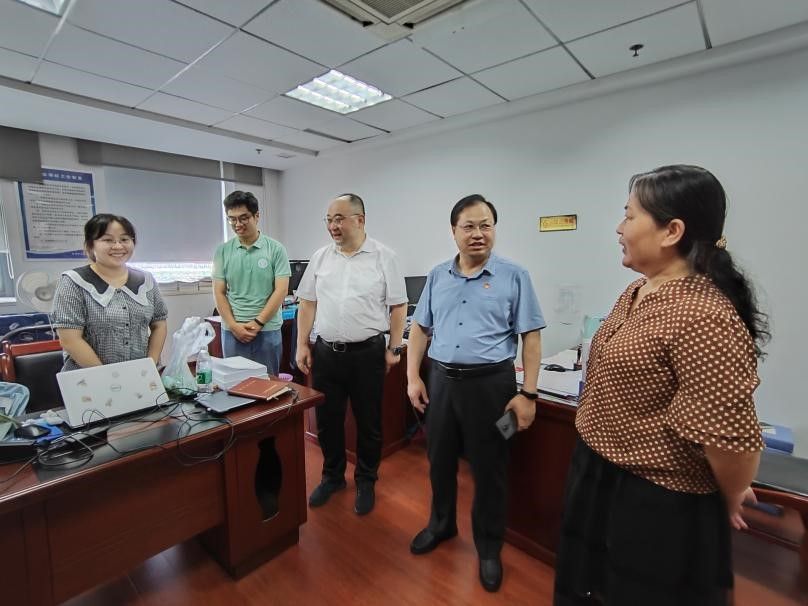(学工办 文贝西 朱承基)火热七月,实践追梦。学院与东西湖区委联袂开展的“遇见武汉,才聚网谷”优秀大学生暑期政务见习社会实践正在如火如荼地开展,学院19位本科生、研究生深入东西湖区主要区直部门和街道参与基层治理、调研国情民情、助力城市发展。7月21日,东西湖区组织部副部长、区委两新工委书记李花文、区团委副书记杨晓玥,学院党委书记赵波、副书记刘嘉梅,和全体本科辅导员前往东西湖区大数据中心、区政协、区团委、区发改局、工商联和应急管理局,以及东山街道、常青花园社区办事处等地看望正在参加政务实习的各位同学。