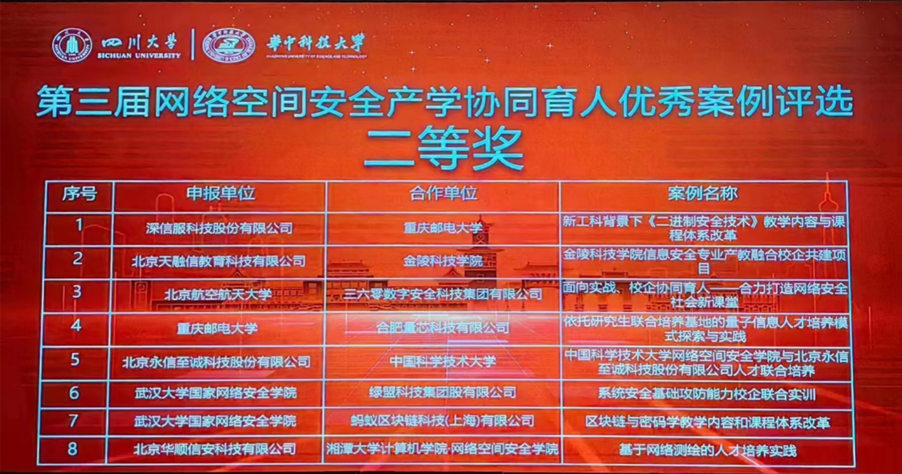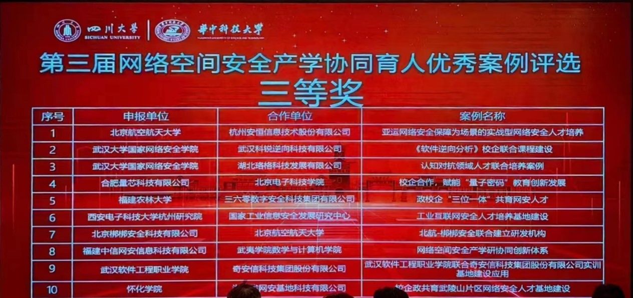 (实验教学中心 杜秋平 熊翘楚)2023年7月6日,由教育部高等学校网络空间安全专业教学指导委员会产学合作育人工作组主办、四川大学与华中科技大学共同承办的“第三届网络空间安全产学协同育人优秀案例评选会”在四川成都召开线下评审会,厂长资源