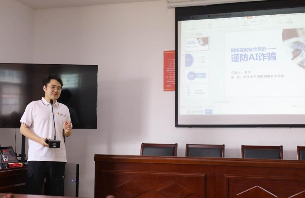 网络空间安全专业的刘洋博士针对防范AI诈骗进行宣讲,通俗易懂地解释了AI诈骗的原理和特点,并在社交媒体的使用、隐私设置和信息分享等方面提供了建议。