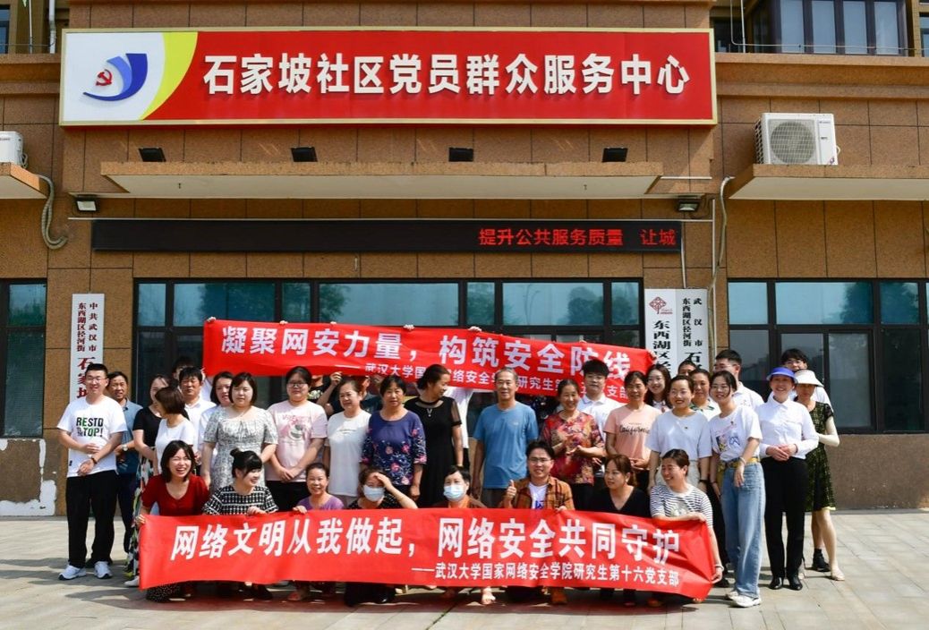 的研究生来到东西湖区径河街道石家坡社区开展网络安全宣教活动。活动由学院研究生第一、第四、第十五和第十六党支部精心策划,包括知识讲座、互动体验、隐患排查等环节,旨在向社区居民普及网络安全知识,提高居民的网络安全意识和防范能力。