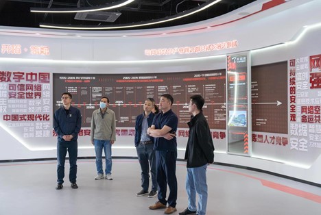 天融信科技集团股份有限公司校企合作部总经理简剑、教育板块负责人丰五广带领大家参观了“与网络安全产业同发展共成长的天融信”、“全产品系列全业务方向全行业营销全区域覆盖”、“相融共创赋能未来”“匠心之志技术为先”“坚持技术应用创新”“智能化在数字化和信息化中逐渐发挥作用”“融天下英才筑可信网络”等展区。