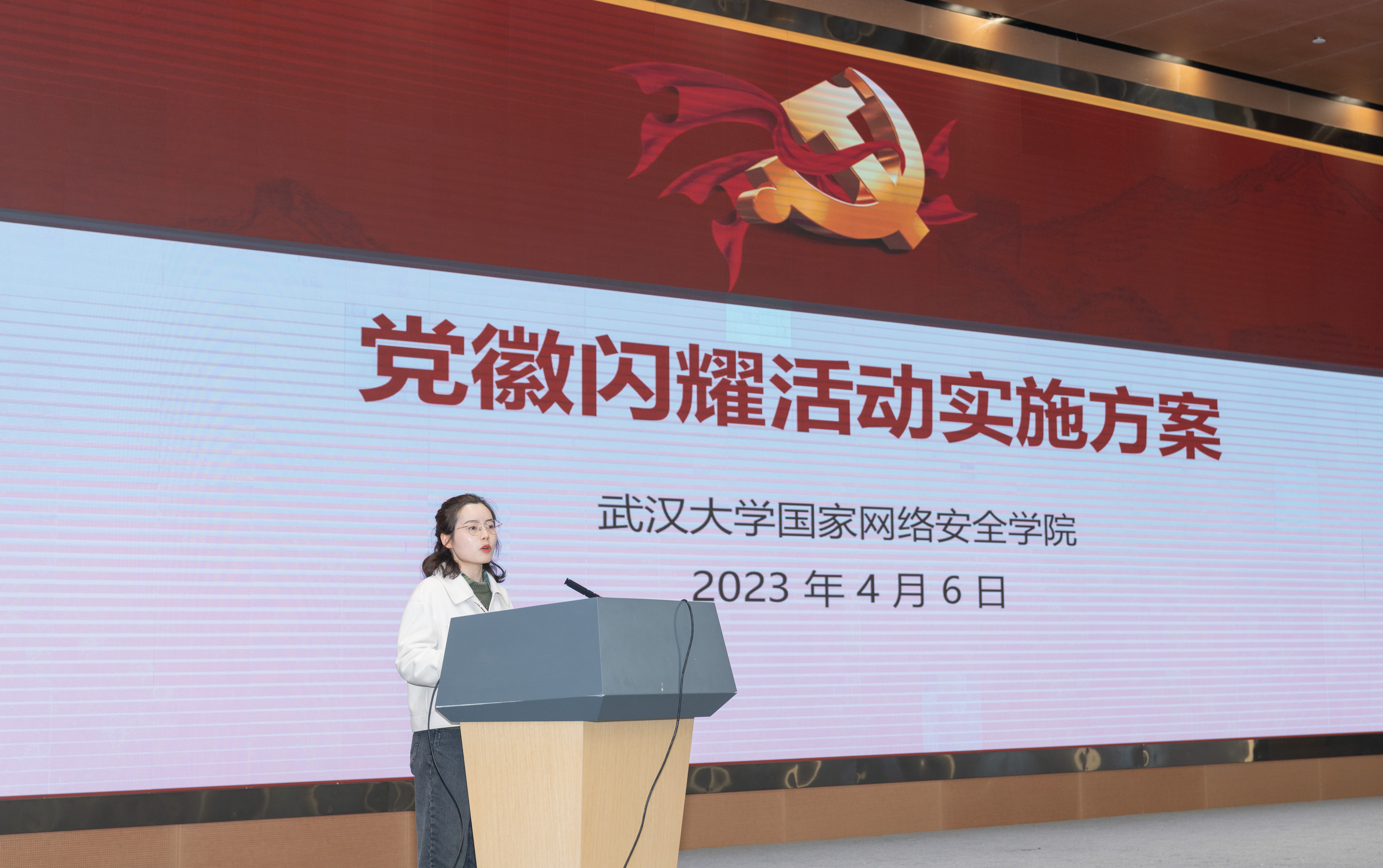 刘路介绍党徽闪耀活动的具体实施方案。学院设立党员先锋岗旨在激励学生党员围绕学院中心工作,立足学习、科研、管理、服务等岗位发挥先锋模范作用,引导教育广大学生党员有理想、敢担当、能吃苦、肯奋斗。