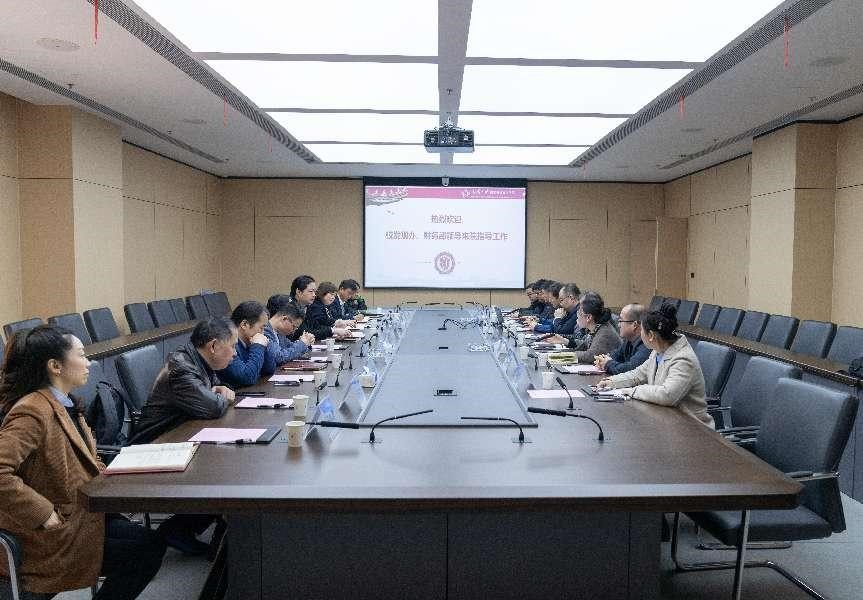 (学科办 赵健)3月30日下午,学校发展规划与学科建设办公室主任龚威教授、财务部副部长杨桦一行来学院调研、指导工作。学院全体班子成员、党政办和学科办负责老师参会,刘嘉梅副书记主持会议。