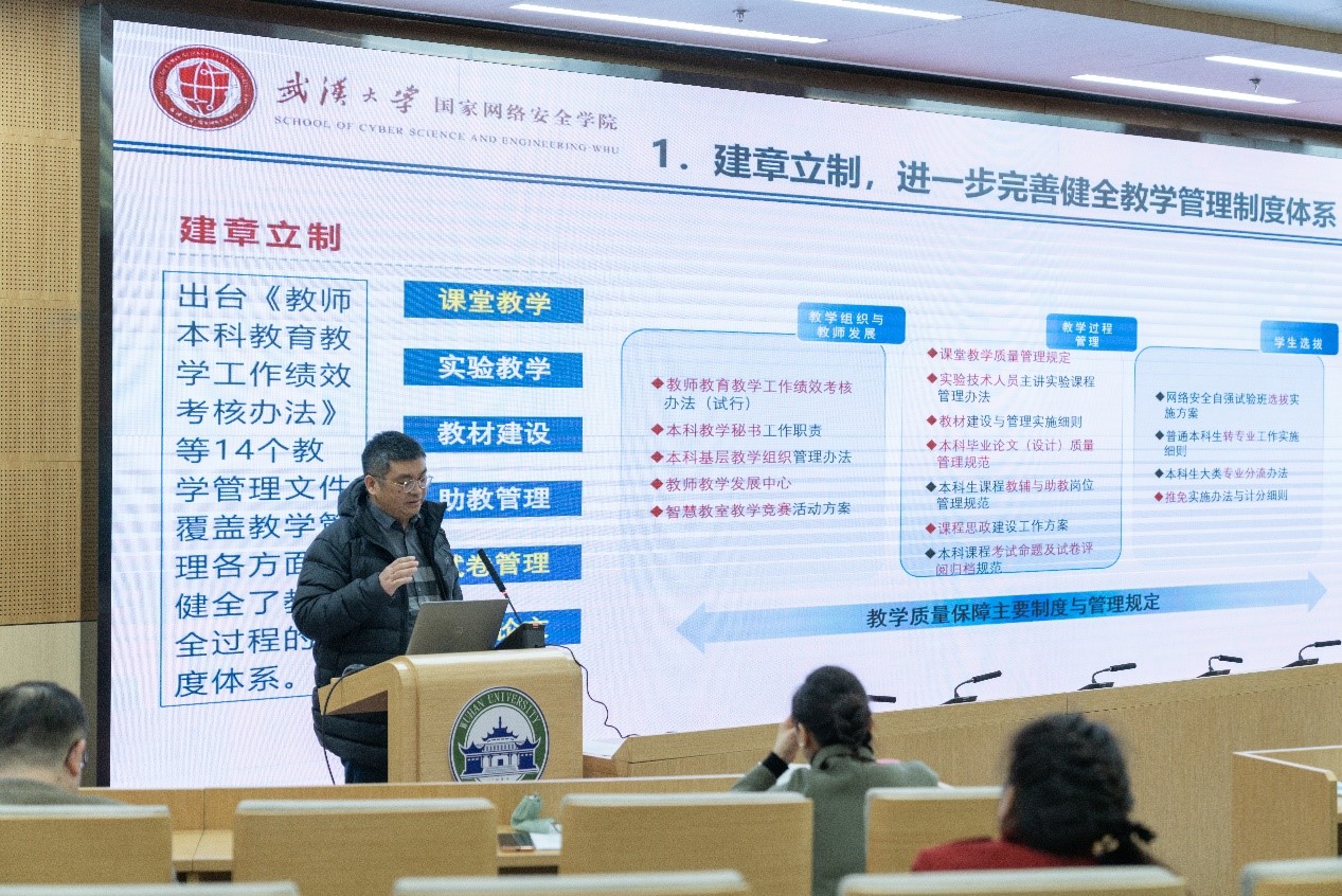 副院长彭国军总结和布置学院教学工作。过去一年,学院本科教学工作稳扎稳打,取得不少突破性成绩。建章立制、健全教学管理制度体系,监测反馈、确保教学质量持续提升;学院信息安全专业在2022年厂长资源