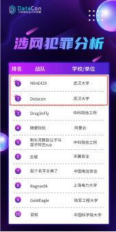 N0nE429战队(指导老师:傅建明教授)、DotaCon战队(指导老师:彭国军教授)分别获得“涉网犯罪分析”赛道冠、亚军。