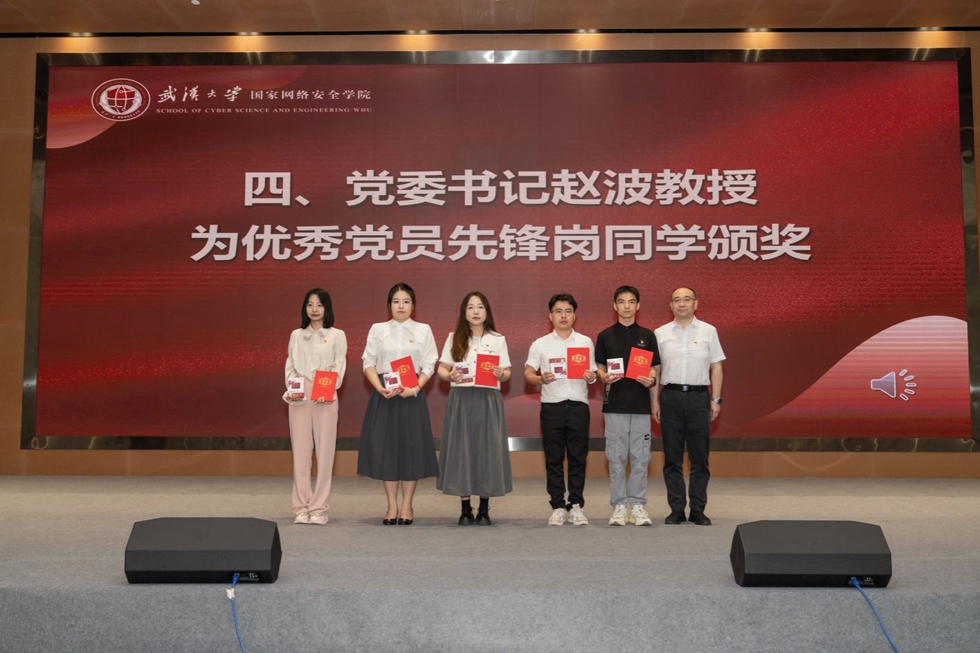 学工办副主任余艳霞宣读了学院党委表彰文件。党委书记赵波教授为获评2023年度优秀学生党员先锋岗的5名同学颁奖。