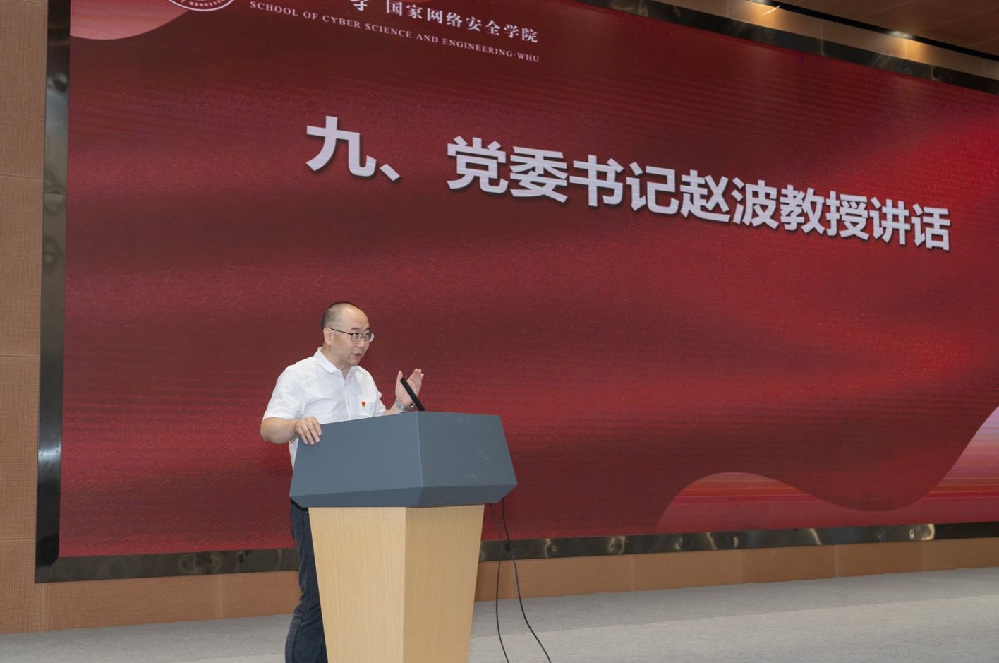 党委书记赵波教授作总结,一是肯定了首期“党徽闪耀活动”的工作成效,希望受表彰的同学珍惜荣誉,戒骄戒躁,再接再厉,进一步发挥共产党员的先锋模范作用;二是期待新一期党员先锋岗同学能够以主人翁精神投入到一流网络安全学院建设中,在专业学习、科研创新、自我管理、志愿服务、社会实践、就业创业等方面充分发挥示范带头作用;二是号召全体党员要以先进为榜样,根据新时代新征程的工作要求,加强党的建设,团结带领全院学生,为学院事业高质量发展作出新的更大贡献。