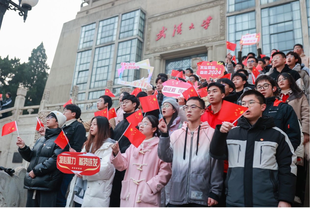 2023级本科生吴酽酌:新年伊始,我们见证了2024年的第一面五星红旗在行政楼前缓缓升起。我们将牢记习近平总书记对武大学子回信中的殷切嘱托,用国家的大事业磨砺自己的真本领。愿祖国亦如今晨那冉冉升起的骄阳一般蒸蒸日上!