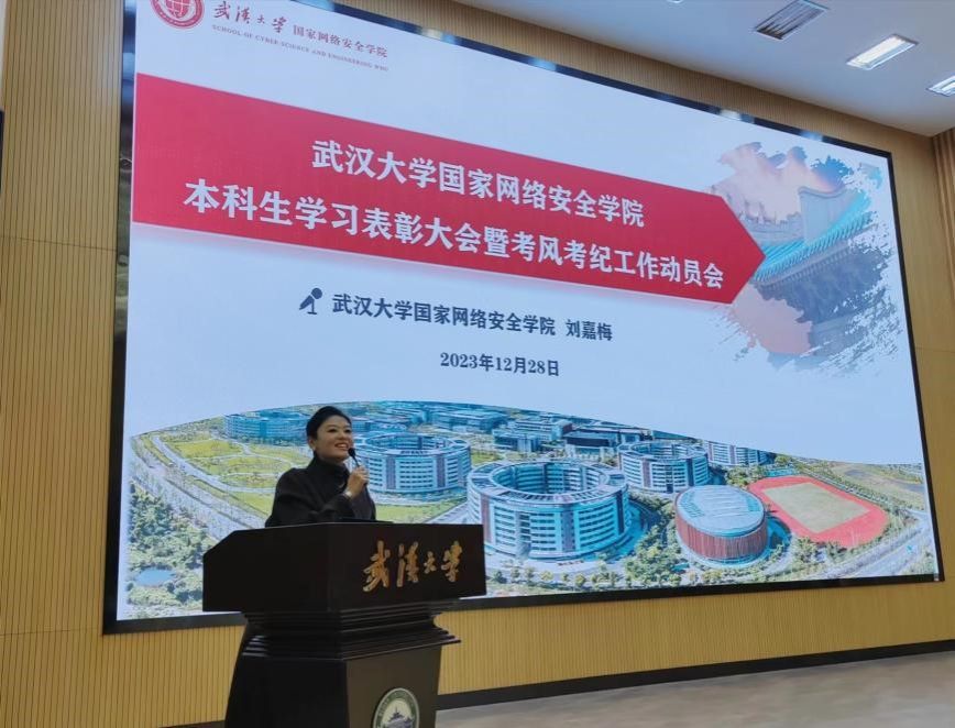 (通讯员 文贝西 盛丹) 为在全院范围内充分发挥榜样引领作用,进一步推动本科生学风建设发展,12月28日下午,学院于工学部大创中心一楼报告厅召开2023年本科生学习总结表彰大会。学院党委书记赵波,副院长彭正明,党委副书记刘嘉梅,院长助理严飞,信息安全系主任王鹃,网络空间安全系主任曹越,密码系副主任杨敏,2023级班主任代表熊翘楚,党政办主任郑艺,教学办主任程媛,学工办主任李炳辉,教学办副主任李津,教学秘书鄢炜、丰存霞,全体本科生辅导员,以及2023级学生和部分获奖代表出席此次会议。大会由学工办副主任金晨主持。