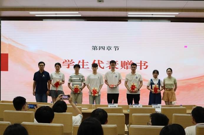 党委副书记刘嘉梅,辅导员文贝西、朱承基与一百多名本科生毕业党员齐聚一堂,共同开展本科毕业生党员最后一课。党课分为《革命壮歌》、《开天辟地》、《砥砺奋进》、《壮阔新篇》、《新珈启航》五个篇章,不同时代主题的红色歌曲与诗词展现,沉浸式带着同学们穿越辉煌历史,感悟信仰力量。