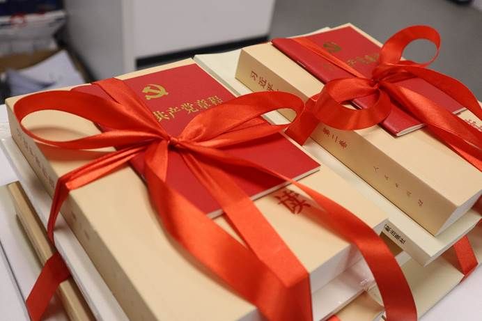“东湖之滨,珞珈山上,这是我们亲爱的学堂……”党课在武大校歌中走向尾声。 最后,同学们重温入党誓词;三位辅导员为毕业生学生党员代表赠书。