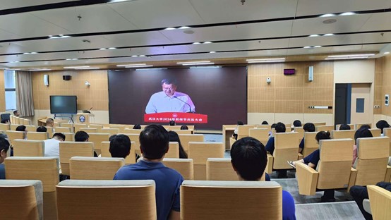 教职工在网安基地新珈楼B101集中观看学校2024年教师节庆祝大会网络直播