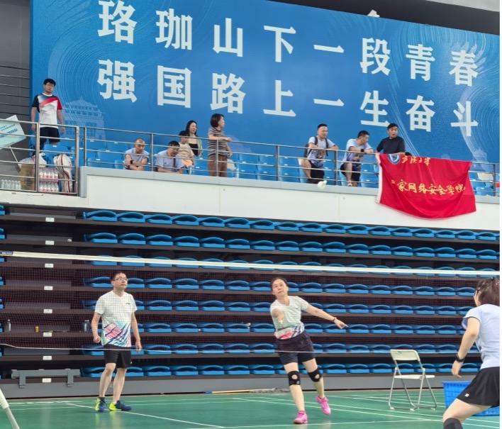 羽毛球代表队常年坚持训练,注重实力提升,师生共同营造“无运动不网安”的环境氛围,平时处处展现“顽强拼搏、勇于突破”的体育运动风采,将“众志成城、无网不胜”精神融入时时刻刻,志在为“网络安全 强国有我”健康工作,奋斗终身!