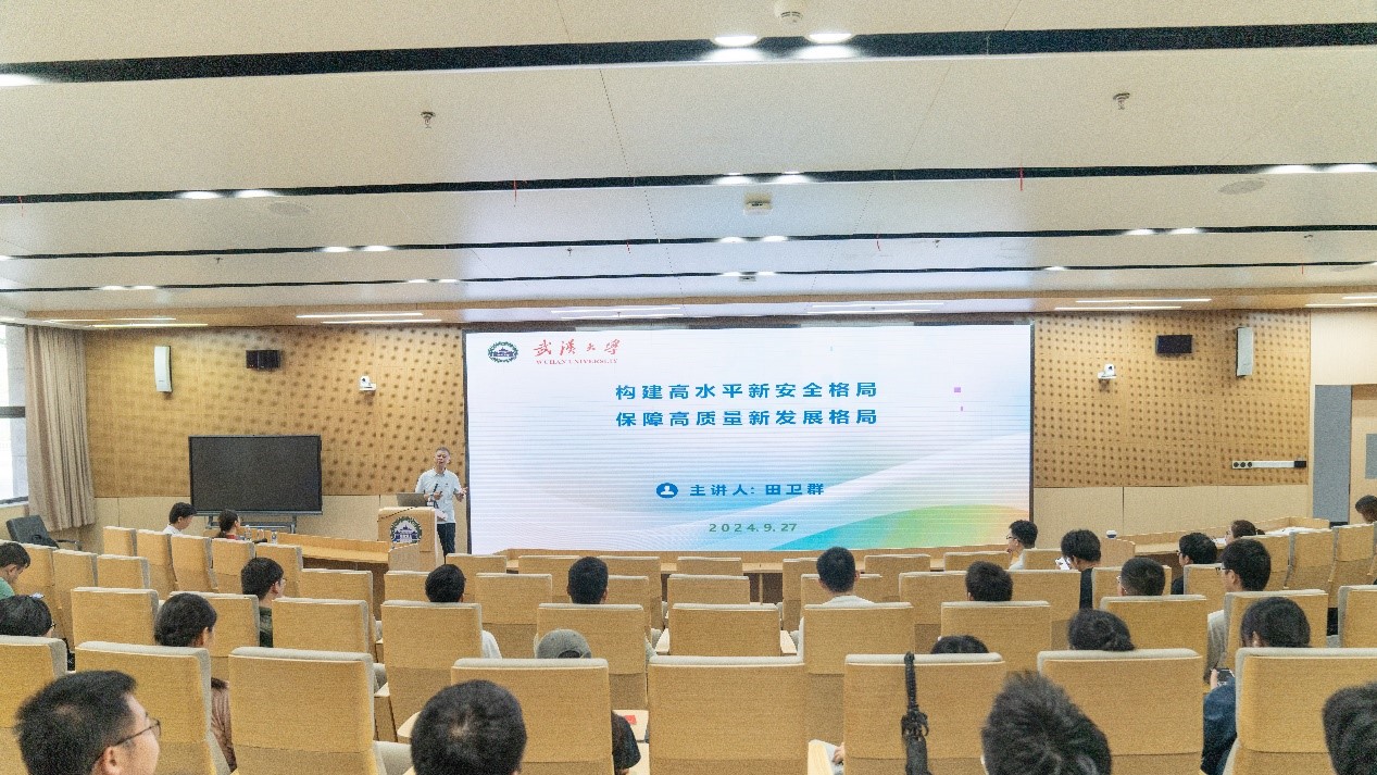 实验室安全督导组专家田卫群担任主讲嘉宾。他以“构建高水平新安全格局,保障高质量新发展格局”为主题,聚焦国家安全、网络安全、交通安全及消防安全,开展了一堂生动讲座。本次讲座由学院行政副院长石向月主持,实验教学中心杜秋平、熊翘楚出席活动,兼职辅导员张嘉蔚、李妍、研究生及本科生代表共100余名学生参与活动。