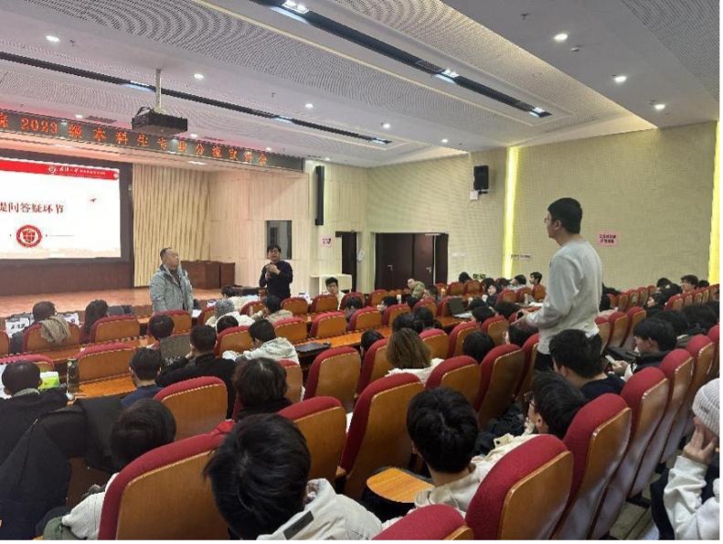 此次宣讲会旨在帮助学生深入了解学院各专业特点、发展前景及就业方向,为后续专业分流工作做好准备。会上,赵磊副院长讲解学院专业分流政策,从专业角度为学生后续学业规划进行了指导。系主任分别从专业背景、培养目标、课程设置、师资队伍、研究领域、发展前景和就业去向等方面对各专业进行了全面而深入的介绍。老师们就学生提出的问题进行了耐心解答,提供了宝贵的建议和指导。最后,刘嘉梅副书记围绕“自愿、自由、自主、自律”四个关键词总结发言。她认为,学院遵循同学们自愿原则,充分尊重大家意愿,在一定范围内允许自主选择,但无论选择什么专业,都要自律,学会自主安排时间、做好合理规划。