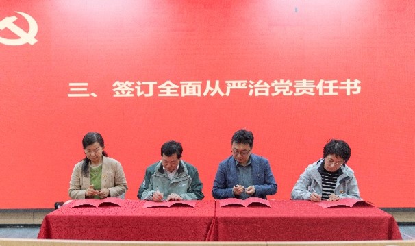 会上,学院各教职工党支部书记与党委书记李良俊、执行院长王骞签订了全面从严治党责任书。