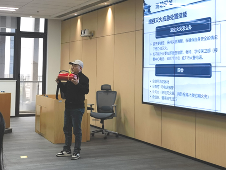 (通讯员 陆一) 2025年3月27日下午2:30,学院在新珈楼B201教室举办了“校园消防安全知识讲座”与“校园食品安全知识讲座”。网安基地的部分学生代表、基地物业公司人员、基地食堂管理人员共计60余人参加了讲座。学生工作办公室副主任余艳霞主持会议。