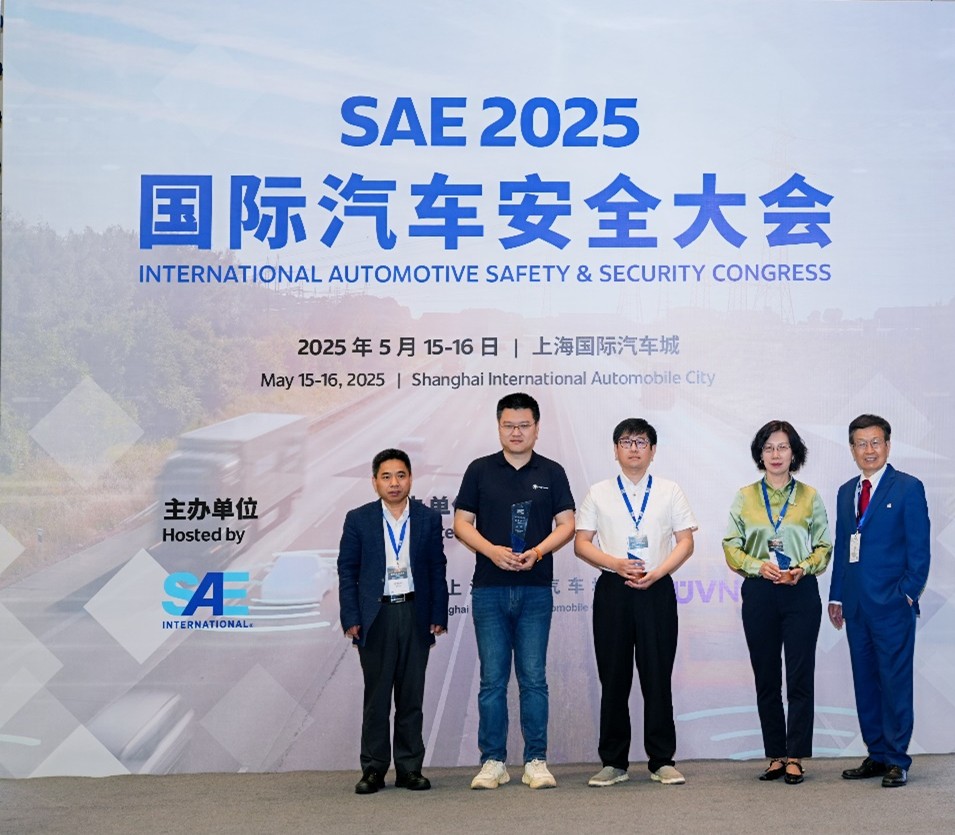 曹越教授凭借其在车联网安全领域的卓越贡献,荣获大会颁发的SAE汽车安全优秀个人奖。该奖项旨在表彰从事汽车安全行业工作,在技术领域、战略变革、产品创新等方面中作出重要贡献的,且具有一定的影响力的管理及技术人才。