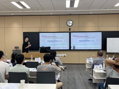 新引进的六位优秀人才——陈洁、赵莽、宁建廷、王恩澍、罗昌华和何艺,作为本次试讲的主角,纷纷登台展示教学风采。六位新教师运用多媒体工具,结合生动的试讲和积极的师生互动,将复杂的专业知识以浅显易懂的方式进行了试讲。在讲课中各位老师重视数智运用和思政元素,例如,何艺老师巧妙地把数智元素融入计算机组成原理知识点试讲,宁建廷老师将思政元素融入离散数学的试讲中。从他们的表现中,可以看到新教师们为此次试讲所付出的努力和准备。互动环节中,老师们有特色的点名问答形式活跃了课堂氛围,促进了课堂的思想碰撞。
