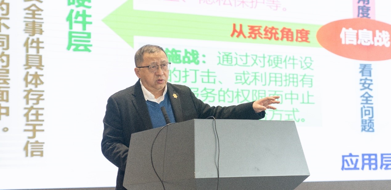 26日下午,方滨兴院士在国家网安基地图书馆报告厅为广大师生带来了题为《从孙子兵法视角看信息战在乌克兰危机中的运用》的学术盛宴,400余位师生参加交流学习。方院士高屋建瓴地提出了网络空间安全“三维九空间”理论,并将博大精深的《孙子兵法》战略智慧融入现代网安攻防分析中。他深度剖析了乌克兰危机中信息战在物理、运行、数据及应用层面的立体博弈,详细拆解了从电力设施战、卫星网络对抗到众筹情报、舆论认知战的复杂演进。这场充满哲学智慧与实战洞察的报告,为师生们提供了系统审视网络安全问题的宏大视角,师生受益匪浅,现场反响热烈。