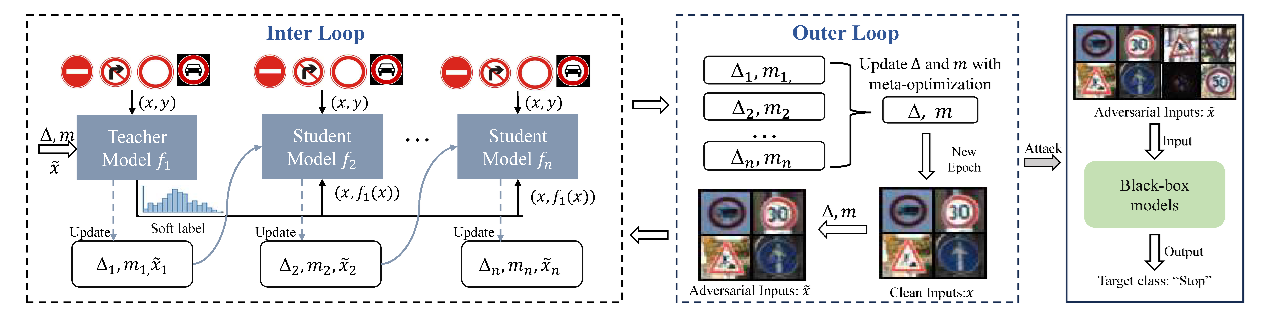 随着深度神经网络(Deep Neural Network, DNN)在日常生活领域的广泛应用,其安全问题受到公众的广泛关注。目前,深度神经网络面临的主要安全威胁包括后门攻击与对抗样本攻击。这两种攻击均试图通过对输入数据施加微小扰动,从而操控模型行为,使其产生非预期甚至恶意的输出。然而,这两种攻击在现实世界中均存在一定的局限性。为解决当前攻击假设过强的挑战,作者提出了一种新颖的黑盒对抗方法,该方法无需投毒数据或访问模型。作者研究发现,干净的训练数据实际上已隐含后门特征,导致模型在训练过程中学习到“自然后门”。基于此发现,作者设计了一个结合知识蒸馏(Knowledge Distillation)与元学习(Meta Learning)的攻击框架,实现从替代模型中提取出能够激活黑盒模型中自然后门的鲁棒特征。通过在共计186个黑盒模型上的广泛验证,该攻击针对大部分模型实现了超过90%的攻击成功率。这一结果揭示了当前深度神经网络在训练阶段所存在的天然脆弱性。本成果原文、论文代码已在网上公开,详情请见//nisplab.czzy4.com/Publications.htm。