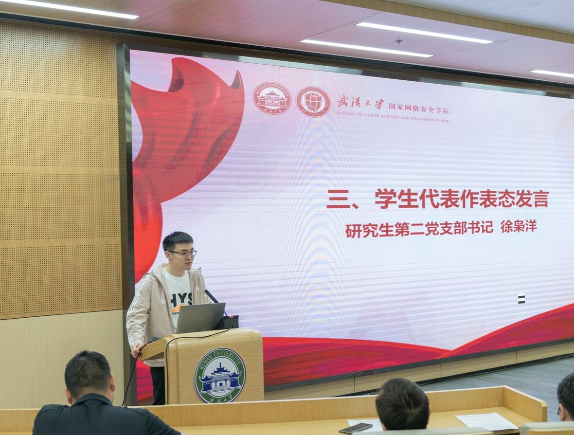 学生代表徐枭洋作表态发言讲到,纪律严明是我们党的光荣传统和独特优势,作为学生党员和学生党支部书记,我要始终勇于担当履职,时刻以党章和党纪严格律己,同时发挥好学院党委和同学之间的桥梁作用;在党支部内要把党纪学习教育工作常态化,与“三会一课”、民主生活会、组织生活会、主题党日活动等紧密结合,引导学生党员牢记初心使命,以深入学习党纪为契机增强纪律意识、提高党性修养。