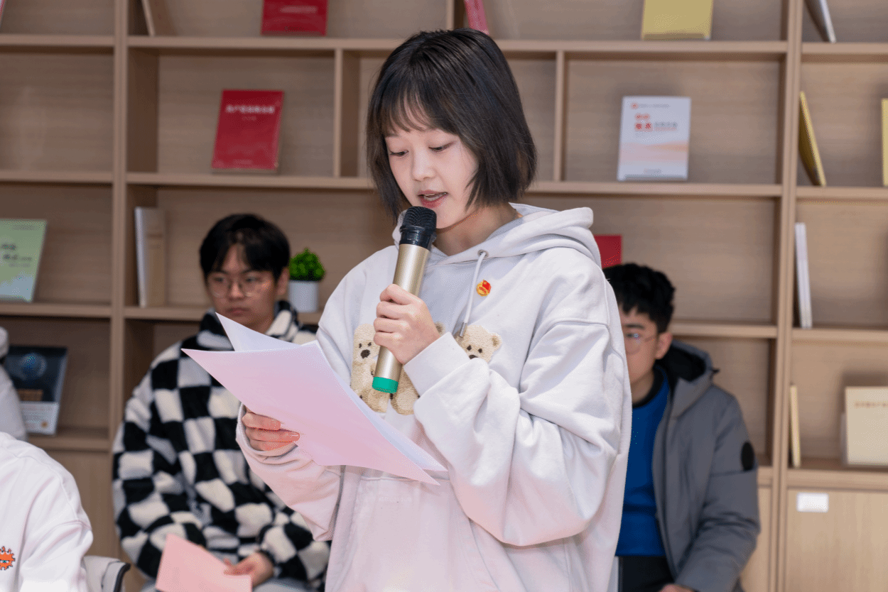 会议第四项,由“一站式”学生社区功能型团支部书记杨曈菲发言。她表示,融入“一站式”学生社区,热心服务身边同学是成立功能型团支部的初心和动力,今后,她将团结带领支部团员青年坚定理想信念、坚持服务同学、创新工作内容、加强沟通合作,建设一个组织架构清晰、作用发挥显著的团支部,推动“一站式”学生社区的建设与发展。